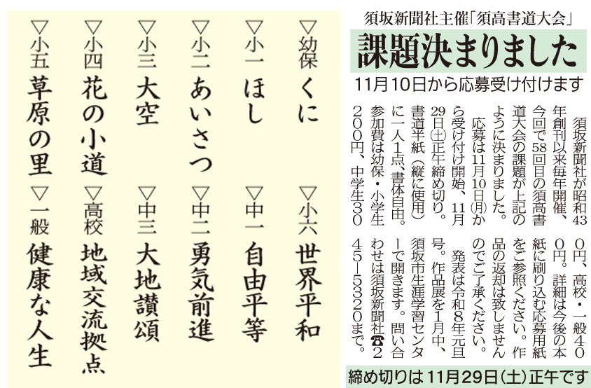 第58回須高書道大会(須坂新聞社主催)応募要項