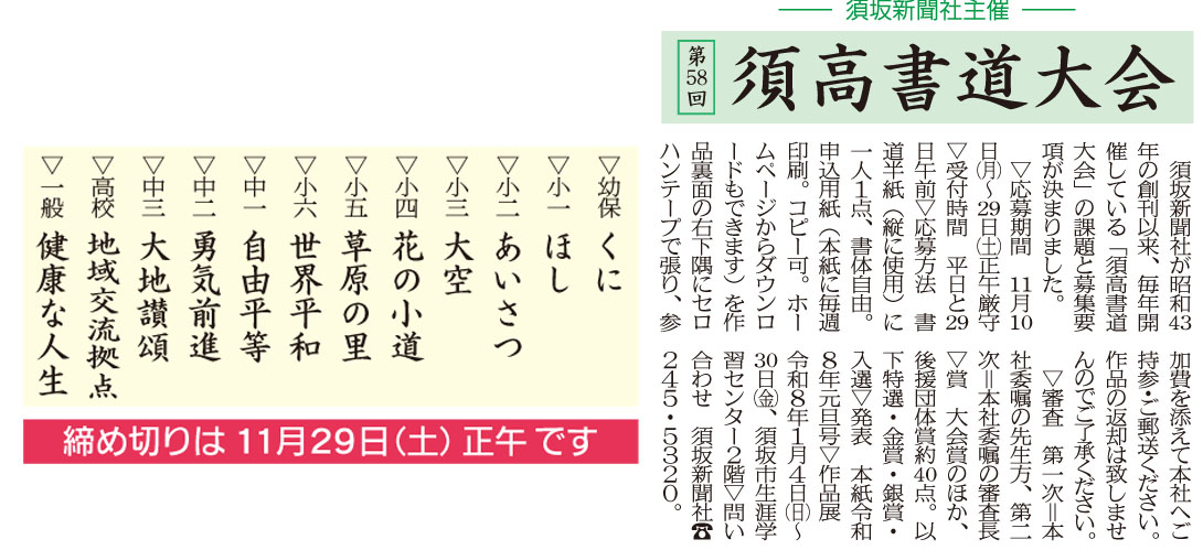 第58回須高書道大会(須坂新聞社主催)応募要項
